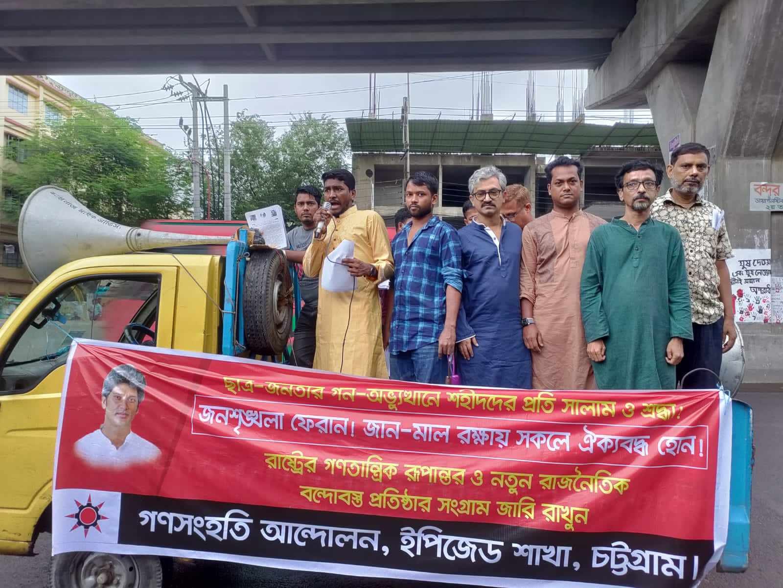 সারাদেশে বৈষম্য বিরোধী ছাত্র আন্দোলনের ডাকে সরকার বিরোধী আন্দোলনে নিহতের স্মরণ ও সুষ্ঠু বিচারের দাবিতে নগরীর ইপিজেড থানাধীন বে শপিং সেন্টার চত্বরে ইপিজেড থানা গার্মেন্টস শ্রমিক সংহতির