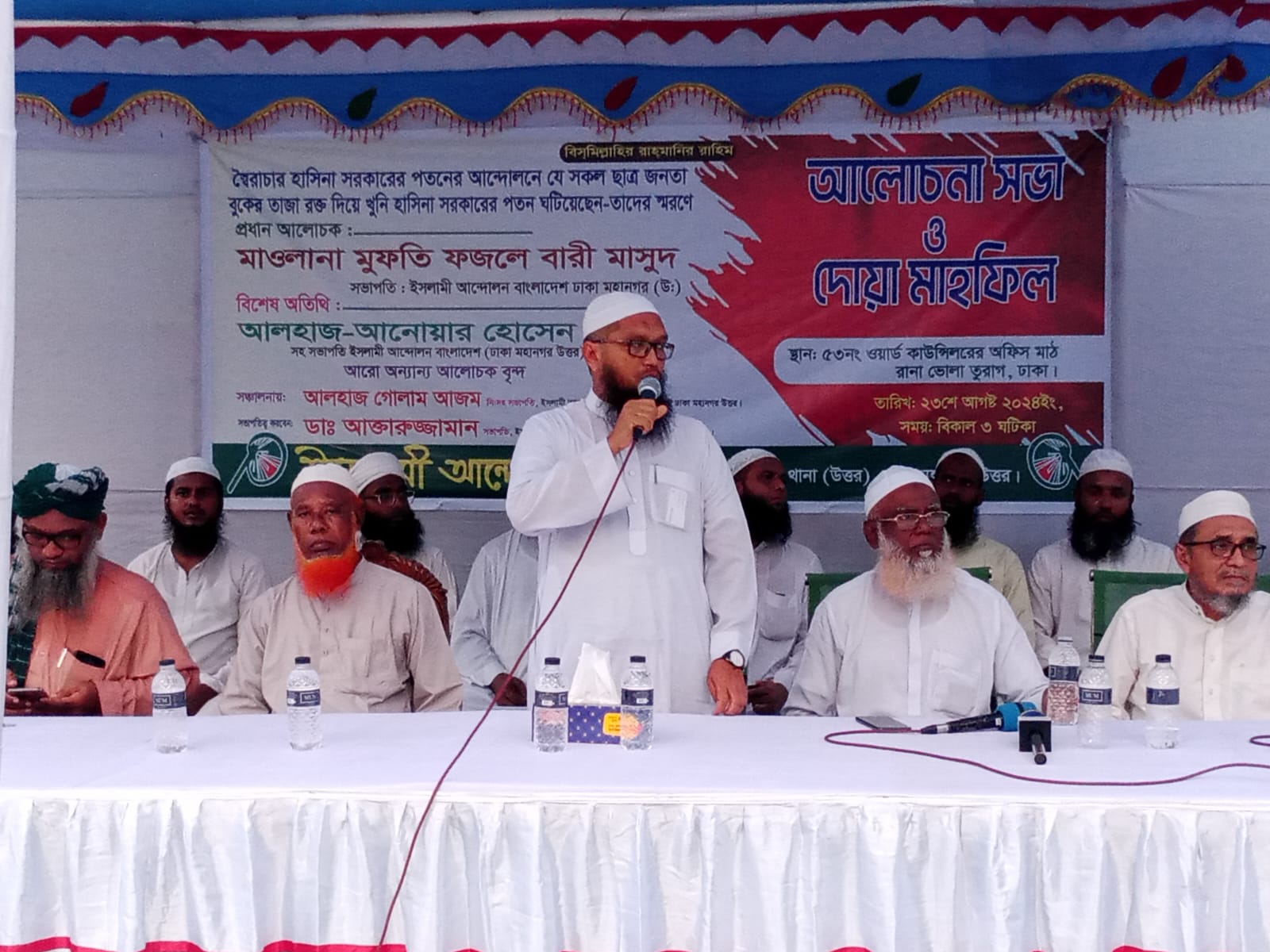 উক্ত আলোচনা সভায়,তুরাগ থানা ইসলামি আন্দোলন এর সিনিয়র সহ-সভাপতি আলহাজ গোলাম আজম এর সঞ্চালনায় ও তুরাগ থানা ইসলামী আন্দোলন এর সভাপতি ডা.আক্তারুজ্জামান এর সভাপতিত্বে প্রধান আলোচক হিসেবে উপস্থিত ছিলেন ইসলামি আন্দোলন বাংলাদেশ ঢাকা মহানগর উত্তর এর সভাপতি মাওলানা মুফতি ফজলে বারী মাসুদ,প্রধান অতিথি হিসেবে ছিলেন ঢাকা উত্তর মহানগর ইসলামী আন্দোলন এর সহ-সভাপতি আলহাজ্ব আনোয়ার হোসেন,তরাগ থানা ইসলামি আন্দোলন এর সাংগঠনিক সম্পাদক নূর আমিনসহ বিভিন্ন থানা নেতা-কর্মীরা।
