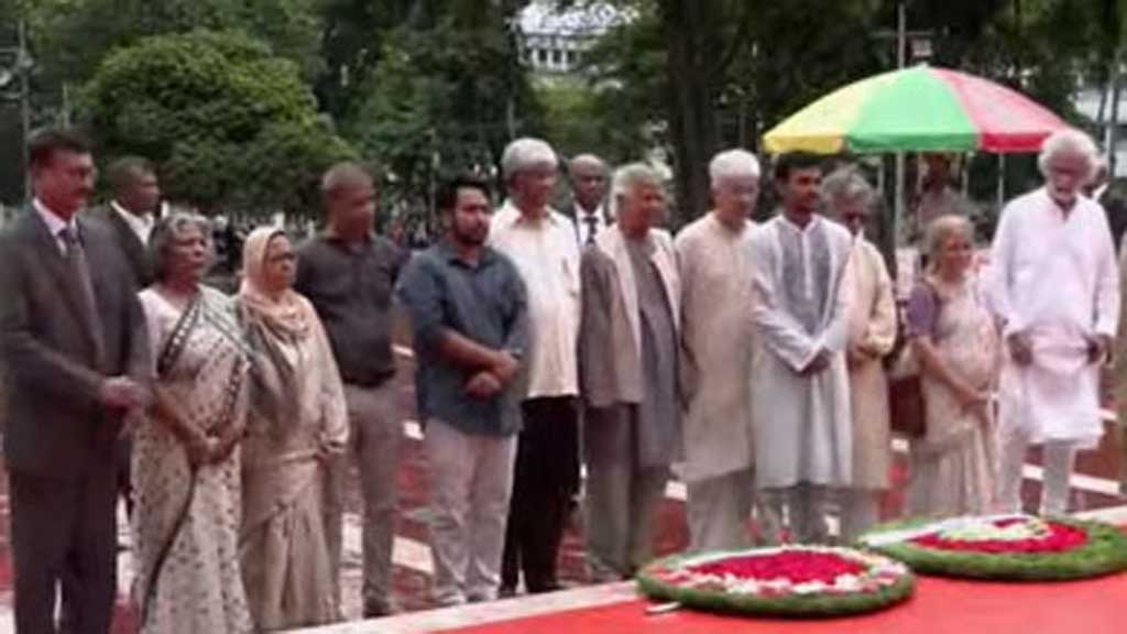 এর আগে সকাল সাভারের জাতীয় স্মৃতি সৌধে শ্রদ্ধা জানান প্রধান উপদেষ্টা ড. মুহাম্মদ ইউনূস ও অন্তর্বর্তী সরকারের ১৩ উপদেষ্টা।