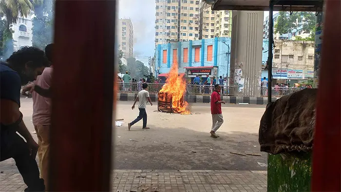 বর্তমানে সেখানে উত্তেজনা বিরাজ করছে এবং রণক্ষেত্রে পরিণত হয়েছে প্রেস ক্লাব।