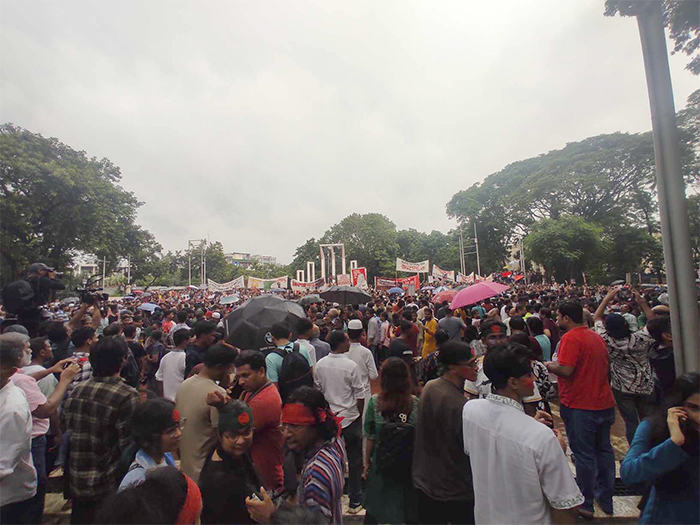 কোটা আন্দোলন ঘিরে হতাহতের ঘটনায় দায়ীদের বিচার করাসহ বেশ কয়েকটি দাবিতে নতুন কর্মসূচি দিয়ে শহীদ মিনার প্রাঙ্গণ ছেড়েছেন ছাত্র, শিক্ষক ও জনতা।