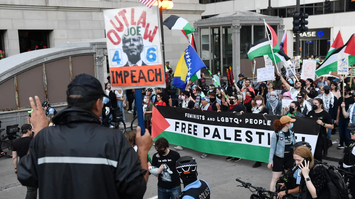 যুদ্ধবিরতির দাবিতে সড়ক আটকে প্রতিবাদ মিছিল করেন তারা। ইসরায়েলকে সামরিক সহায়তা দেয়া বাইডেন প্রশাসনের বিরুদ্ধে ক্ষোভ ঝাড়েন তারা।