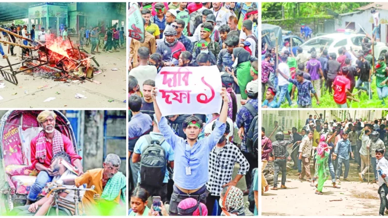 একদফা দাবিকে ঘিরে গতকাল সকাল থেকেই রাজধানী জুড়ে থমথমে অবস্থা বিরাজ করছিল। ঢাকার প্রতিটি রাস্তা ছিল সেনাবাহিনীসহ আইনশৃঙ্খলা বাহিনীর সদস্যদের দখলে। নিজেদের দাবি আদায় ও অসহযোগ আন্দোলন পালনে সেই কারফিউ’র মধ্যেই গতকাল সকাল দশটার পর রাজধানীর যাত্রাবাড়ীর কাজলা এলাকায় জড়ো হতে শুরু করে কোটা সংস্কার আন্দোলনের প্ল্যাটফরম বৈষম্যবিরোধী ছাত্র ও সাধারণ জনগণ। আন্দোলনকারীরা এসময় রাস্তায় একত্রিত হয়ে স্লোগান দিয়ে সামনে এগুতে শুরু করলে তাদেরকে লক্ষ্য করে সাউন্ড গ্রেনেড, রাবার বুলেট ও টিয়ারশেল ছুড়ে ছত্রভঙ্গ করে দেয় আইনশৃঙ্খলা বাহিনীর সদস্যরা।