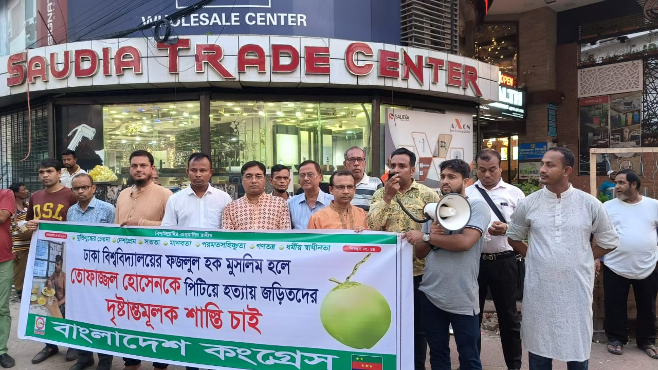 নিজস্ব প্রতিনিধি:বিশ্ববিদ্যালয়ের ফজলুল হক মুসলিম হলে জনৈক তোফাজ্জেল হোসেন কে পিটিয়ে হত্যার প্রতিবাদে বাংলাদেশ কংগ্রেস শুক্রবার(২০ সেপ্টেম্বর) বিকাল ৫ টায় বাংলামোটরস্থ কেন্দ্রীয় কার্যালয়ের সামনে বিক্ষোভ কর্মসূচী পালন করেছে। বাংলাদেশ কংগ্রেসের চেয়ারম্যান এ্যাডঃ কাজী রেজাউল হোসেনের সভাপতিত্বে অনুষ্ঠিত বিক্ষোভ কর্মসূচীতে ঢাকা বিশ্ববিদ্যালয়ে তোফাজ্জেল ও জাহাঙ্গীরনগর বিশ্ববিদ্যালয়ে শামীমকে পিটিয়ে হত্যায় ক্ষোভ প্রকাশ করা হয় এবং নিরপেক্ষ তদন্তের মাধ্যমে হত্যাকারীদেরকে বিচারের আওতায় আনার দাবী জানানো হয়।