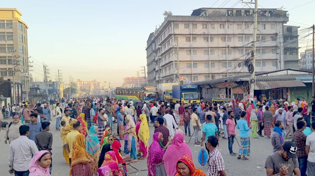 তৃতীয় দিনের মতো শ্রমিকরা মহাসড়কে অবস্থান নিয়ে বিক্ষোভ করছে। তারা রবিবার (১০ নভেম্বর) রাতে পালাক্রমে মহাসড়কে অবস্থান নিয়ে বিক্ষোভ করছে।