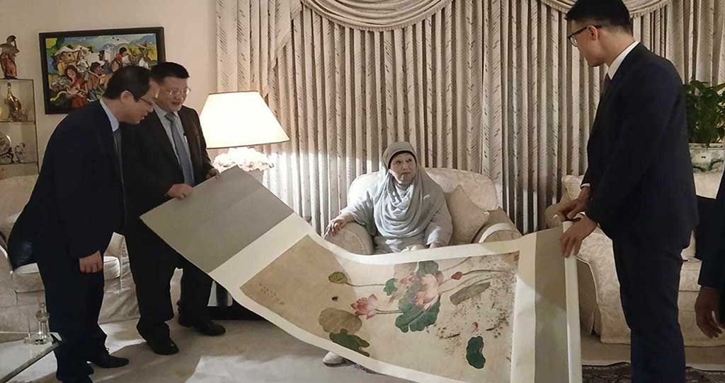 এ ছাড়া চীনের পক্ষে থেকে খালেদা জিয়াকে একটি চীনের ঐতিহ্য দেয়ালচিত্র উপহার দেওয়া হয়।