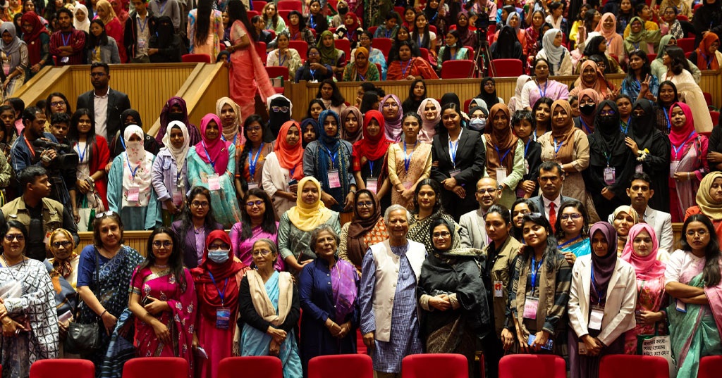 প্রধান উপদেষ্টার প্রেস উইং জানিয়েছে, ‘জুলাইয়ের কন্যারা… আমরা তোমাদের হারিয়ে যেতে দেব না’ শীর্ষক নারী সমাবেশে প্রধান উপদেষ্টা অধ্যাপক মুহাম্মদ ইউনূস উপস্থিত ছিলেন, যেখানে জুলাই বিপ্লবের কন্যাদের কীর্তিগাঁথা ও অবদান তুলে ধরা হয়।