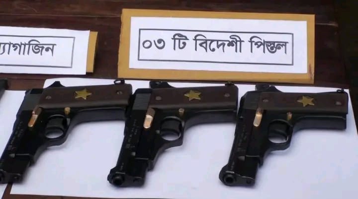 পুলিশ সুপার বলেন, উদ্ধার করা তিনটি পিস্তলের গায়ে এক পার্শ্বে ইংরেজীতে খোদাই করে NO 110 MADE IN V. J. A IILLY এবং ব্যারেলের অপর পার্শ্বে ইংরেজীতে খোদাই করে CHINA লেখা। গুলি পিছনে ইংরেজীতে খোদাই করে K.F 7.65 লেখা।