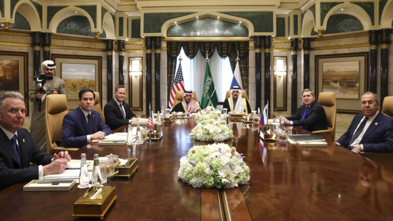 ইউক্রেন যুদ্ধ বন্ধে সৌদি আরবে বৈঠক করেছেন যুক্তরাষ্ট্র ও রাশিয়ার শীর্ষ কর্মকর্তারা। প্রায় সাড়ে চার ঘণ্টা ধরে চলে এই বৈঠক। অবশেষে ইউক্রেন যুদ্ধের সমাপ্তি টানতে সম্মত রাশিয়া। তবে ইউএস ও রাশিয়ার দূতাবাসে কর্মীদের পুনর্বহাল, ইউক্রেন শান্তি আলোচনা এগিয়ে নিতে একটি উচ্চ পর্যায়ের দল তৈরি এবং উভয় পক্ষের মধ্যে ঘনিষ্ঠ সম্পর্ক ও অর্থনৈতিক সহযোগিতা অন্বেষণ করতে সম্মত হয়েছে। এক প্রতিবেদনে যুক্তরাষ্ট্রের সংবাদমাধ্যম সিএনএন নিউজ এ তথ্য জানায়।
