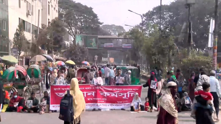 গণঅভ্যুত্থানে সংগঠিত প্রতিটি হত্যার বিচারের দাবিতে শাহবাগে অবস্থান নিয়েছেন নিহতদের পরিবারের সদস্যরা। বৃহস্পতিবার (৬ ফেব্রুয়ারি) সকাল সাড়ে এগারোটায় শাহবাগ মোড়ে অবস্থান নেন তারা। তাতে শাহবাগ মোড় দিয়ে যান চলাচল বন্ধ হয়ে যায়। ফলে আশপাশের সড়কগুলোতে তীব্র যানজট দেখা দিয়েছি।