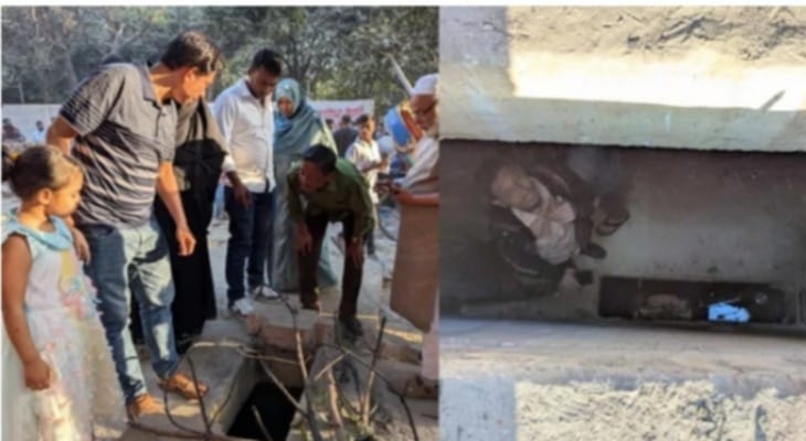 প্রত্যক্ষদর্শী বলেন, ‘বাড়ির নিচে আমরা কয়েকটি কক্ষের সন্ধান পেয়েছি, কিন্তু সেখানে প্রবেশ করা সম্ভব হয়নি, কারণ পুরো জায়গাটি পানিতে ভরা। এটি খুবই সন্দেহজনক।’