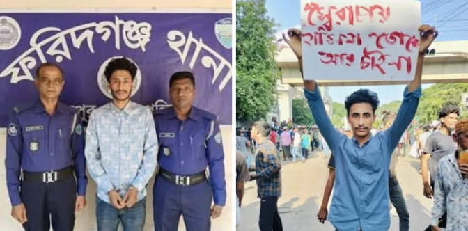একজন প্রতিবাদ কারী ছাত্রনেতার হাতে যেভাবে হাত কড়া পরানো হয়েছে যা কোন স্বৈরাচারের হাতেও পরানো হয়না।