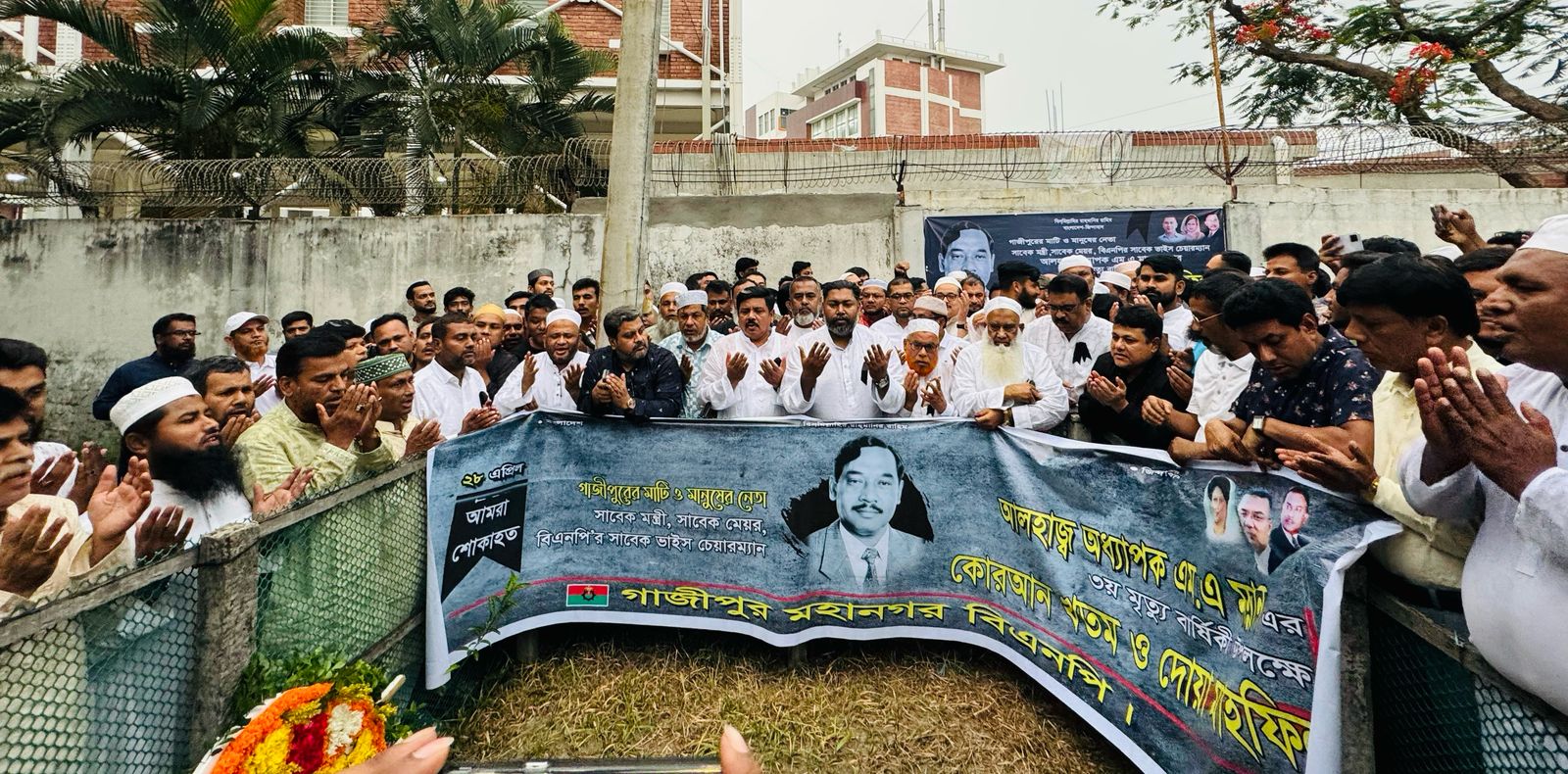 গাজীপুর মহানগর বিএনপির উদ্যোগে প্রয়াত নেতা বিএনপির সাবেক ভাইস চেয়ারম্যান , সাবেক মন্ত্রী ও সাবেক মেয়র অধ্যাপক এম এ মান্নানের ৩য় মৃত্যু বার্ষিকীতে ফাতেহা পাঠ ও কবর জিয়ারত ও দোয়া অনুষ্ঠিত হয় মরহুমের সালনা বাড়ীস্হ কবরস্থানে।