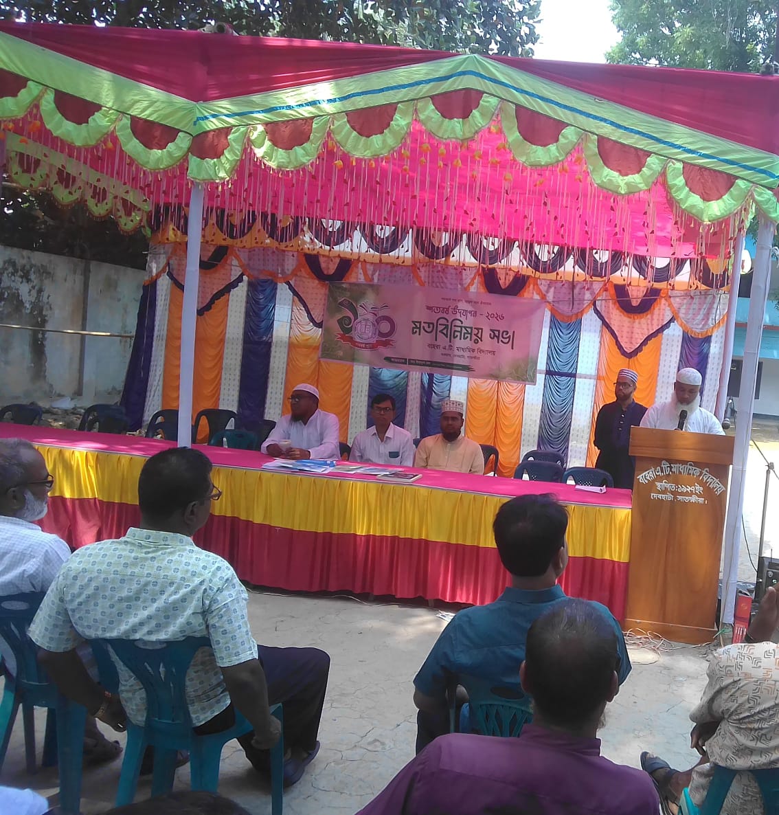 মোঃ রিয়াজুল ইসলাম, স্টাফ রিপোর্টার : সাতক্ষীরায় দেবহাটার ঐতিহ্যবাহী শিক্ষা প্রতিষ্ঠান বহেরা এ.টি মাধ্যমিক বিদ্যালয়ের শতবর্ষ উদযাপন উপলক্ষে অত্র স্কুলের প্রাক্তন প্রধান শিক্ষক আলহাজ্ব ইমাদুল হকের সভাপতিত্বে আজ মঙ্গলবার সকাল ৯ টায় মত বিনিময় সভার আয়োজন করা হয়। উক্ত আলোচনা সভায় দিক নির্দেশনামূলক বক্তব্য রাখেন দেবহাটা সরকারি উচ্চ মাধ্যমিক বিদ্যালয়ের প্রধান শিক্ষক বাবু মদন মোহন পাল এবং টাউনশ্রীপুর শরৎচন্দ্র মাধ্যমিক বিদ্যালয়ের প্রধান শিক্ষক আবুল কালাম আজাদ। উক্ত আলোচনা সভায় বক্তব্য রাখেন অত্র প্রতিষ্ঠানের এ্যাডহক কমিটির সভাপতি আনোয়ারুল ইসলাম, সহকারী শিক্ষক রফিকুল ইসলাম খান, রাসেল আহম্মেদ, সূবর্নাবাদ সেন্ট্রাল হাইস্কুলের সহকারী শিক্ষক সাদিকুল ইসলাম, এ্যাডভোকেট জাহাঙ্গীর কবির বাবু, নূরে আজম সহ আরো অনেকে। সভায় বহেরা এ.টি মাধ্যমিক বিদ্যালয়ের প্রধান শিক্ষক আলিমুর রহমান, সূবর্নাবাদ সেন্ট্রাল হাইস্কুলের প্রধান শিক্ষক মনিরুজ্জামান, কুলিয়া ইউনিয়ন গার্লস স্কুলের প্রধান শিক্ষক অহিদুজ্জামান বাবু উপস্থিত ছিলেন।
