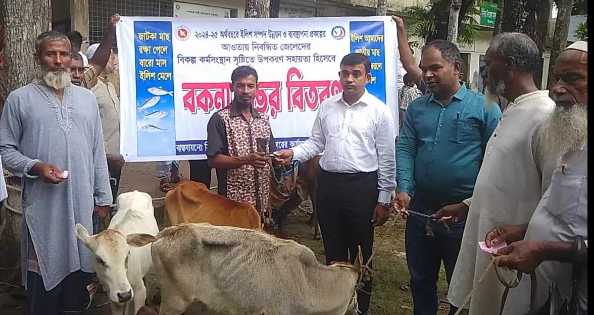 বরিশালের হিজলায় জেলেদের মাঝে বকনা বাছুর বিতরণ করা হয়