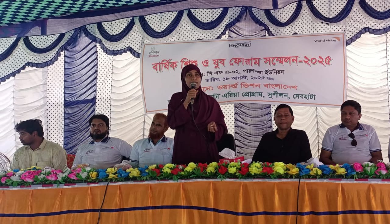 মো:রিয়াজুর ইসলাম,স্টাফ রিপোর্টার _সাতক্ষীরার দেবহাটায সুশীলনের দেবহাটা এরিয়া প্রোগ্রামের আয়োজনে ও ওয়ার্ল্ড ভিশন বাংলাদেশের অর্থায়নে বার্ষিক শিশু ও যুব ফোরাম সম্মেলন-২৫ অনুষ্ঠিত হয়েছে। সোমবার ১৮ আগষ্ট দুপুর সাড়ে ১২টায় পারুলিয়া ইছামতী টেকনিক্যাল স্কুল এন্ড কলেজের সামনে অনুষ্ঠিত উক্ত অনুষ্ঠানে সভাপতিত্ব করেন পারুলিয়া ইউপি চেয়ারম্যান গোলাম ফারুক বাবু। প্রধান অতিথি হিসেবে দেবহাটা উপজেলা মহিলা বিষয়ক কর্মকর্তা নাসরিন জাহান। বিশেষ অতিথি ছিলেন যথাক্রমে দেবহাটা রিপোর্টার্স ক্লাবের সভাপতি আর.কে.বাপ্পা, ইছামতী টেকনিক্যাল কলেজের অধ্যক্ষ আহছানুস সালেহীন, দেবহাটা উপজেলা মাধ্যমিক শিক্ষা অফিসের একাডেমিক সুপারভাইজার মিজানুর রহমান ও দেবহাটা উপজেলা যুব উন্নয়ন অধিদপ্তরের সহকারী কর্মকর্তা তরিকুল ইসলাম। শুরুতে স্বাগত বক্তব্য রাখেন সুশীলনের কমিউনিটি ডেভেলপমেন্ট অফিসার মিজানুর রহমান। সুশীলনের ন্যাশনাল চাইল্ড প্রোগ্রামের ভাইস প্রেসিডেন্ট অনামিকা পালের সার্বিক সঞ্চালনায় এসময় অনুষ্ঠানে অন্যান্যের মধ্যে উপস্থিত ছিলেন দেবহাটা রিপোর্টার্স ক্লাবের সাংগঠনিক সম্পাদক কে এম রেজাউল করিম, দেবহাটা প্রেসক্লাবের সাংগঠনিক সম্পাদক কবির হোসেন, সুশীলনের বিভিন্ন দায়িত্বপ্রাপ্ত কর্মকর্তা ও উপজেলার ৫টি ইউনিয়নের শিশু ও যুব ফোরামের কমিটির কর্মকর্তাবৃন্দ। শুরুতে পট গান ও বিভিন্ন পোস্টারিংয়ের মাধ্যমে আগত অতিথিদেরকে সুশীলনের পক্ষ থেকে এই শিশু ও যুব ফোরামের কার্য্যক্রম সম্পর্কে অবহিত করা হয়। এই কমিটি শিশু শ্রম বন্ধ, বাল্য বিবাহ প্রতিরোধ, সামাজিক অবক্ষয় রোধ, শিক্ষার্থীদেরকে মনিটরিংয়ের মাধ্যমে সচেতন ও স্বাবলম্বী হতে সহায়তা করাসহ বিভিন্ন কাজ করছে বলে জানানো হয়।