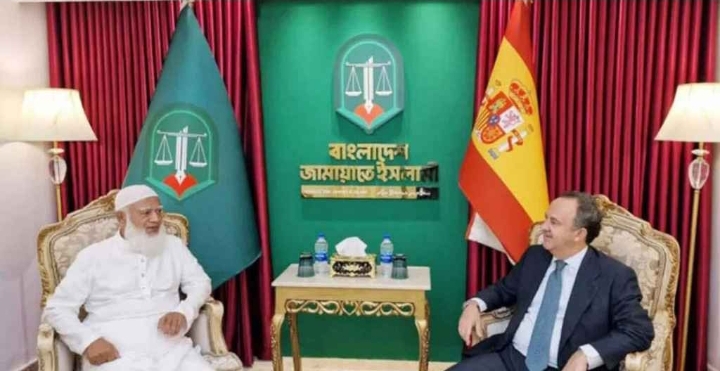 এর আগে, রাজধানীর বসুন্ধরায় জামায়াত আমিরের কার্যালয়ে ঢাকায় নিযুক্ত স্পেনের রাষ্ট্রদূত গ্যাব্রিয়েল সিস্তিয়াগা ওচোয়া দে চিনচেত্রু সৌজন্য সাক্ষাৎ করেন। ওই সময় দাঁড়িপাল্লার সঙ্গে দোয়াত ও জাতীয় পতাকা সংমিশ্রিত একটি লোগো দেখা যায়, যা নিয়ে সামাজিক যোগাযোগমাধ্যমে আলোচনা শুরু হয়।