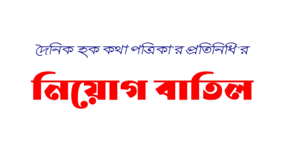 অতএব, জনসাধারণকে অবহিত করা যাচ্ছে যে, উক্ত ব্যক্তি আর দৈনিক হক কথা-এর কোনো প্রতিনিধি বা সাংবাদিক নন। তার মাধ্যমে প্রাপ্ত কোনো সংবাদ বা কার্যক্রমের জন্য দৈনিক হক কথা দায়ী থাকবে না।