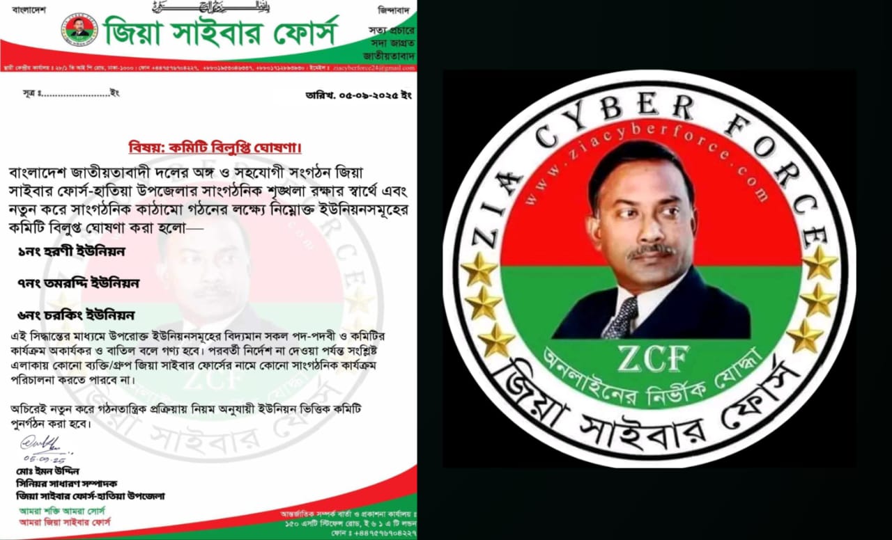 বিজ্ঞপ্তিতে বলা হয়, বিদ্যমান কমিটির সকল পদ-পদবী ও সাংগঠনিক কার্যক্রম বাতিল করা হয়েছে। পরবর্তী নির্দেশ না দেওয়া পর্যন্ত উক্ত ইউনিয়নগুলোতে জিয়া সাইবার ফোর্সের নামে কোনো কার্যক্রম পরিচালনা করা যাবে না।