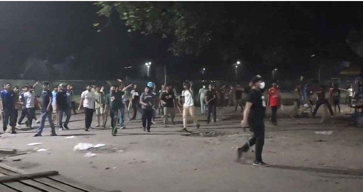 এসময় উভয়পক্ষের মধ্যে ইট-পাটকেল নিক্ষেপ চলতে থাকে, পুরো এলাকা যেন যুদ্ধক্ষেত্রের রূপ নেয়। পরিস্থিতি নিয়ন্ত্রণে ঢাবির ডাকসু সহ-সভাপতি সাদিক কায়েমসহ ছাত্রনেতারা উপস্থিত হয়ে শান্তি প্রতিষ্ঠার চেষ্টা করেন। পাশাপাশি, পুলিশও বিপুল সংখ্যক সদস্য নিয়ে এলাকাটি ঘেরাও করে রাখে।