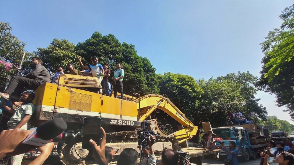বুলডোজার নিয়ে ধানমন্ডি ৩২ নম্বরের পথে ছাত্র-জনতা