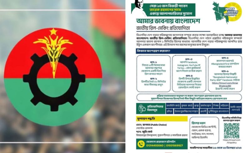 বিএনপির দেশ গড়ার পরিকল্পনায় জনগণকে সরাসরি সম্পৃক্ত করার লক্ষ্যে আয়োজন করা হয়েছে ‘আমার ভাবনায় বাংলাদেশ’ জাতীয় রিল-মেকিং প্রতিযোগিতা। এ প্রতিযোগিতার মাধ্যমে দেশের ভবিষ্যৎ নিয়ে জনগণের ভাবনা, মতামত ও প্রস্তাব ১ মিনিটের রিল ভিডিওর মাধ্যমে তুলে ধরার আহ্বান জানানো হয়েছে।