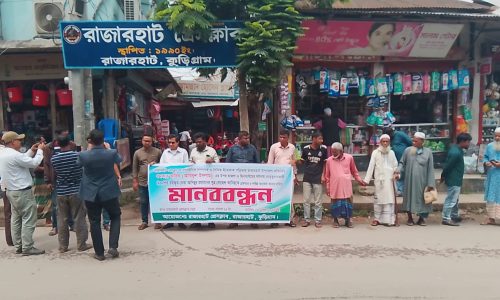 ​রাজারহাটে সাংবাদিকের উপর হামলা ও ছিনতাইয়ের প্রতিবাদে মানববন্ধঃআসামী গ্রেফতারে ২৪ ঘণ্টার আল্টিমেটাম