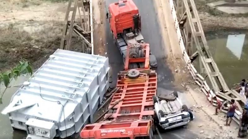 ব্রিজ ভেঙে লরি ও প্রাইভেটকার নদীতে