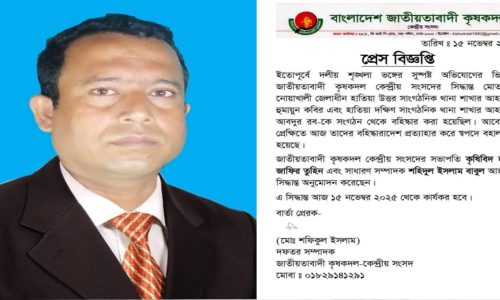 হাতিয়া কৃষকদলের আহবায়কের বহিষ্কারাদেশ প্রত্যাহার