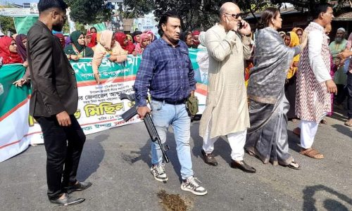 আওয়ামী লীগের মিছিলে প্রকাশ্যে অস্ত্র প্রদর্শন, নান্দাইলে তোলপাড়