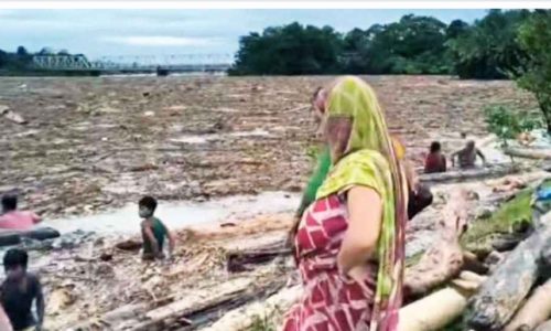 ভারতীয় পাহাড় ধসে ভেসে আসছে কোটি কোটি টাকার গাছের গুঁড়ি